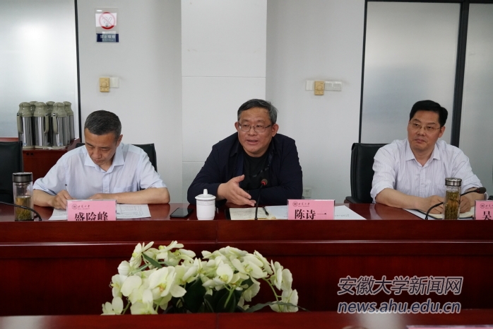 陈诗一对阜阳师大代表团的来访表示欢迎,对联合培养博士研究生方案表示积极支持。他介绍了我校研究生教育基本情况,希望两校能够紧扣地方发展战略、聚焦人才培养、创新培养办法,依据各自优势和特点展开合作,实现优势互补,这不仅对安徽高等教育发展意义重大,更为安徽建设发展培养更多的高端人才。