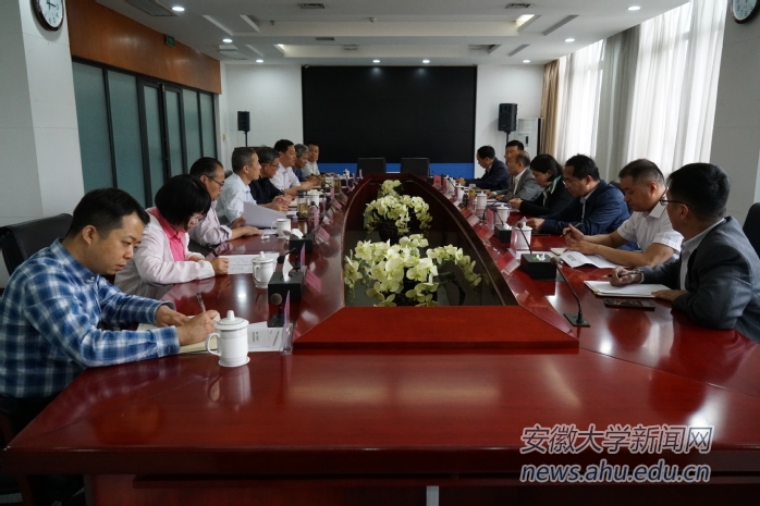 李文雍对安徽大学的热情接待表示感谢,他介绍了阜阳师范师大的基本情况,希望双方在原有的合作基础上,在博士点建设等方面加强合作。