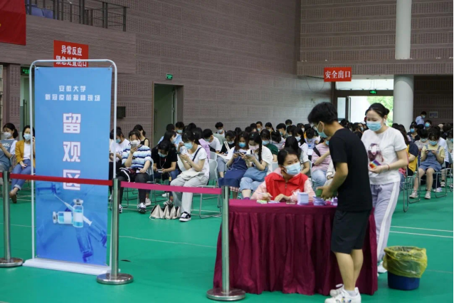 5月15日下午,为保障龙河校区学生安全,防止学生在校外聚集,学校在蜀山区政府的帮助下,临时在龙河校区田家炳体育馆开设新冠疫苗接种点;