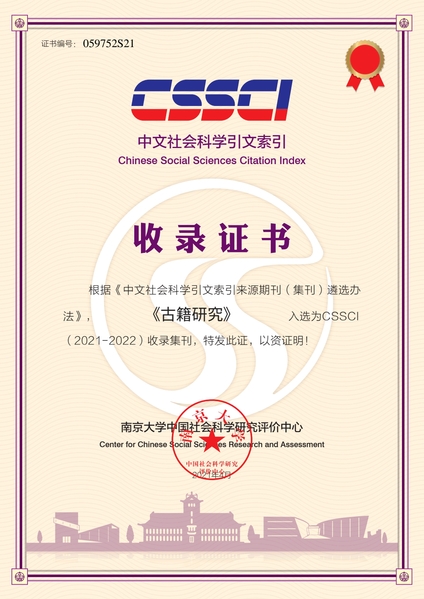 本网讯(《古籍研究》编辑部)近日,根据《中文社会科学引文索引来源期刊(集刊)遴选办法》,南京大学中国社会科学研究评价中心公布了2021—2022年度“中文社会科学引文索引”(Chinese Social Sciences Citation Index,简称“CSSCI”)数据库收录期刊、集刊,《古籍研究》光荣入选。