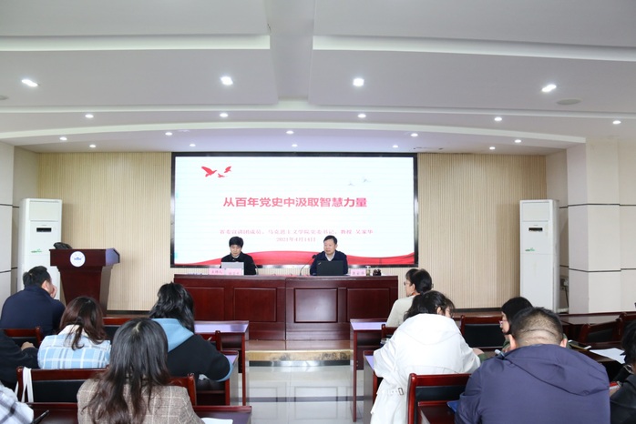 学院与中国社会科学院马克思主义研究院习近平新时代中国特色社会主义思想研究部等单位联合举办了“建党百年:道路探索与理论创新”学术研讨会,来自全国近200名专家学者参加了会议。学院深入开展专题研究,推出一批高质量的理论文章,张崇旺、钱宝平等在《安徽日报》《江淮》等党报党刊上发表了系列理论、评论文章。开展主题为“百年初心,不忘使命”“学无涯”论坛(2021年)征文活动,收到论文近40篇。围绕主题为《中国共产党:百年历程和伟大成绩》开展三期系列沙龙活动,以进一步促进青年教师之间的学术交流,开拓师生学术视野,增强学术研究能力。