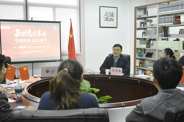 利用专业特点,着力思政载体创新,拓展“第二课堂”辅阵地。法学院着力打造“启航工程”“法学入门”“知远分享会”等“第二课堂”特色活动,为学生扣好人生第一粒“扣子”。“知远分享会”,邀请来自法律职业共同体的理论和实务部门专家学者以及优秀校友通过经验分享,“以学生为中心、以能力培养为导向”,指导学生进行学业、职业规划,推动思想政治教育与专业教育紧密结合,让思政教育成效“入脑入心”。第一期“知远分享会”,郭志远老师以“学思践悟、励志成才”为主题,从专业特点出发,提出了法律人未来规划的方向:“法律人应当保有善良之心,要始终坚持法律所遵循的公平正义的理念。作为未来社会主义法治国家建设的主力军,法学院学子要培养自己的法治意识和家国情怀,为国家法治建设贡献力量。”