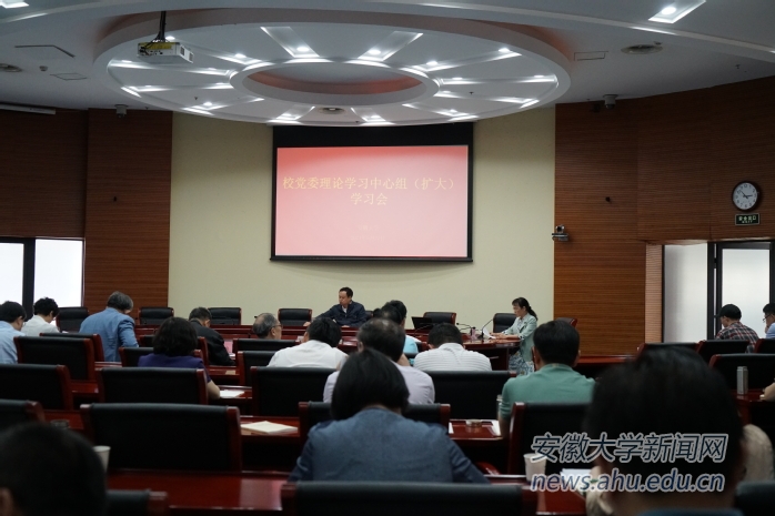 本网讯(融媒体中心 范华飞)5月27日下午,我校在磬苑校区行政楼B204召开校党委理论学习中心组(扩大)学习会。校党委书记蔡敬民,校党委副书记胡小松,校党委副书记、常务副校长陈诗一,校党委常委、副校长俞本立、程雁雷、周飞,副校长钱家盛出席会议。会议由蔡敬民主持。