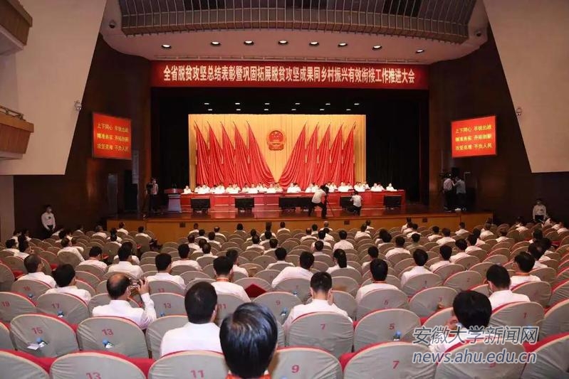本网讯(电气工程与自动化学院)5月28日上午,全省脱贫攻坚总结表彰暨巩固拓展脱贫攻坚成果同乡村振兴有效衔接工作推进大会在合肥召开。会议以电话电视会议形式召开,主会场设在安徽大剧院。会议由省长王清宪主持,学校党委书记蔡敬民参加会议。