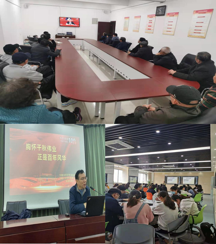 发挥专业优势讲党史。“五老”充分发挥学术素养深、理论水平高的特点,坚持用学术讲政治。离退休工作处组建由周乾、张胜义、郑明珍、武菁、裴德海教授等专家学者组成的党史学习教育“五老”宣讲团,拟定“不忘初心,牢记使命做合格共产党员”“心灵历练与党性修养”等专题宣讲菜单,推送给各单位自行选择。截至目前,“五老”宣讲团已为外语学院、经济学院、互联网学院等院系做了七场党史学习教育主题宣讲。报告会上,武菁教授深刻分析了中国共产党建立的国际国内背景,论述了中国共产党的理论创新与实践探索的艰难历程及历史贡献,总结了中国共产党领导中国革命和建设的宝贵经验。张胜义教授则指出,党性修养与人性修养有相通之处,先做个“好”人,才能做“好”党员。鼓励同学们在生活中保持自我,发扬真我,创造美好。裴德海教授还走出校门,走进临湖社区、中化三建、宿州二中、黄山市委党校等单位,发出安大党史学习教育宣讲声音。“五老”宣讲团的宣讲既高屋建瓴又深入浅出,既有理论的深度,又有历史的厚度,将历史与现实、理论与实践有机统一起来,为广大师生带来了一堂堂生动深刻的党课。