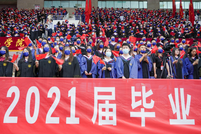 本网讯(融媒体中心 徐红)6月27日上午,2021届毕业生毕业典礼暨学位授予仪式在磬苑校区和龙河校区同步举行,并通过抖音平台进行直播。