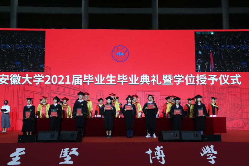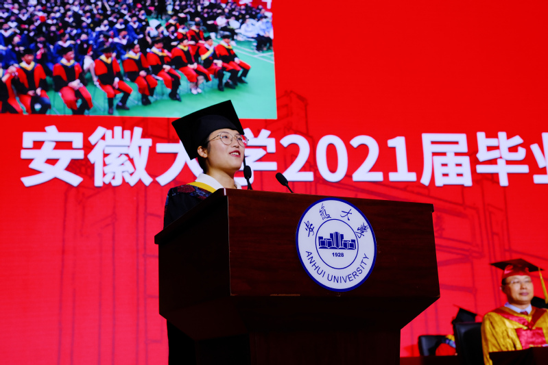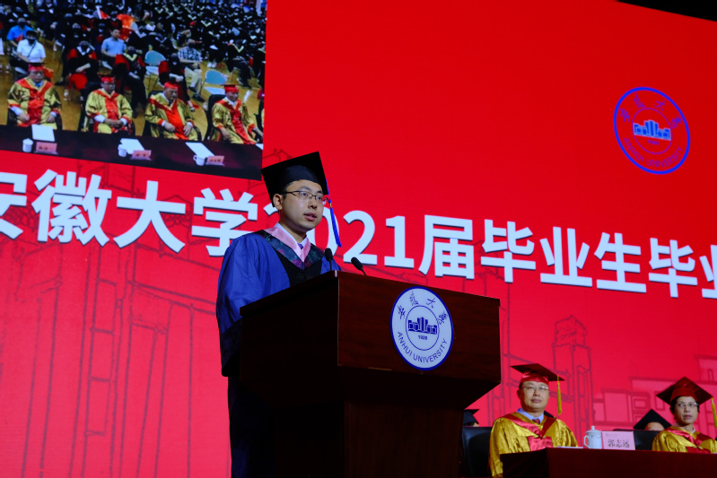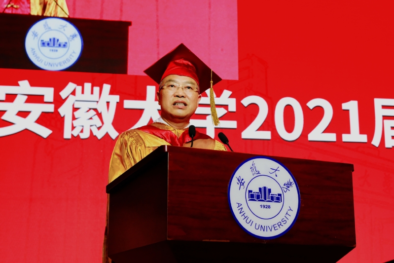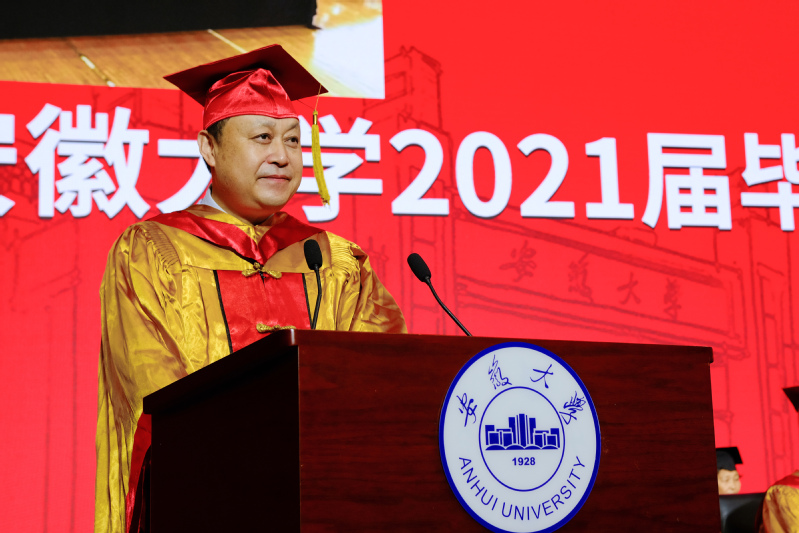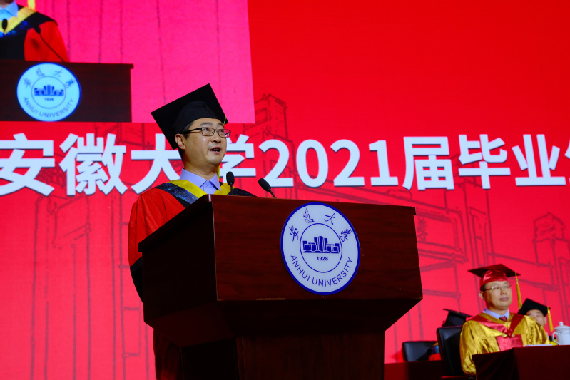 校长匡光力指出,四年来,安大人披荆斩棘,风雨同舟,亲历并见证了学校“双一流”建设的高歌猛进和辉煌成就。从1921年共产党人蔡晓舟抽刀断指、誓死筹建安徽大学,一代代安大人将个人理想与国家命运紧紧相连的热血青春,天南海北的安大校友,积极投身祖国建设、奋力拼搏实现自我的无悔青春。他希望2021届毕业生在未来的人生道路上,秉持安大精神,胸怀鸿鹄之志,成为勇担时代重任的民族脊梁。
