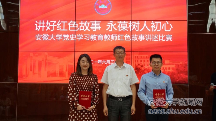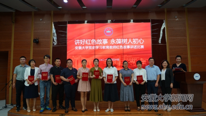 本网讯(融媒体中心宋林娜)为进一步加强教师思想政治和师德师风建设,深入贯彻落实习近平总书记在党史学习教育动员大会上的重要讲话精神,6月30日下午,我校在磬苑校区文典阁报告厅举行了“讲好红色故事,永葆树人初心”红色故事讲述比赛。校党委副书记胡小松,安徽广播电视台主任编辑、安徽新闻综合广播业务指导郭辉出席活动。比赛由艺术学院教师郜雪主持。来自学校各单位的18位教师讲述了一个个真实生动的故事。