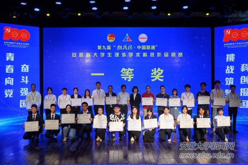 本网讯(校团委 阮思雨 卢萌)近日,安徽省第九届“挑战杯”大学生课外学术科技作品竞赛颁奖典礼在安庆师范大学举行。根据赛事规定,我校报送省赛作品10件全部入围终审决赛,最终荣获省一等奖4项、二等奖6项,我校荣获优胜杯。