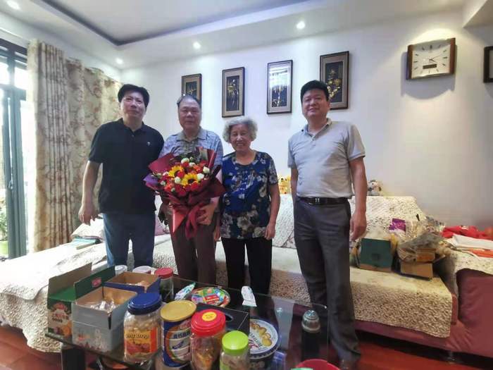校工会一行人到 “省劳动模范”张铃老师家进行慰问。张铃老师是中国著名计算机专家,在他82岁高龄之际重新出山,牵头创办安徽大学“安徽院士工作站”。张铃老师深情地回忆了组建安大计算机系时不平凡的日日夜夜。校工会党支部党员代表慰问了老党员姜继庐同志和董家富同志,向他们颁发了“光荣在党50年”纪念章。两位老党员以质朴的语言表达了只有中国共产党才能使中国富起来、强起来的朴素真理。校工会还以寄送鲜花和短信祝福的形式慰问了马宝华、程桦和宁健康三位省部级离退休劳模,上门看望了困难党员王家恕同志。