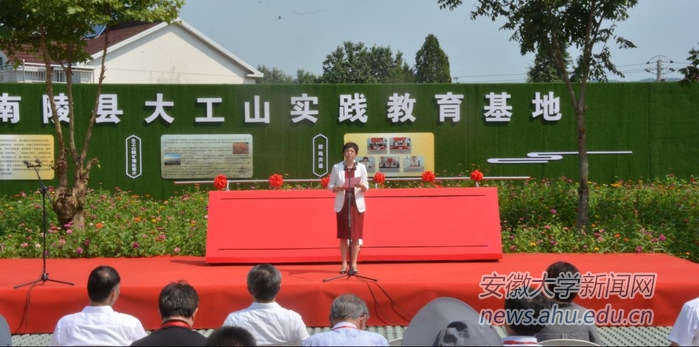 程雁雷表示,南陵大工山实践教育基地的建成,为安徽大学历史学院的人才培养和科学研究搭建了一个很好的跨学科平台,将有效提升考古学科的建设水平和考古专业学生的田野实践能力、遗产保护能力和科学研究能力,并能通过校地合作,进一步促进南陵县矿冶遗产的保护、展示和利用,为南陵县的经济和文化建设作出重大贡献。她强调,历史学院师生要以传承历史文化遗产、发扬人文精神、服务社会为己任,不断加强与其他科研院所的紧密合作,共同为我国考古文博事业作出更大贡献,使基地成为安徽大学考古人,乃至安徽考古人书写中国特色、中国风格和中国气派考古学的神圣土地。