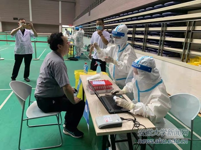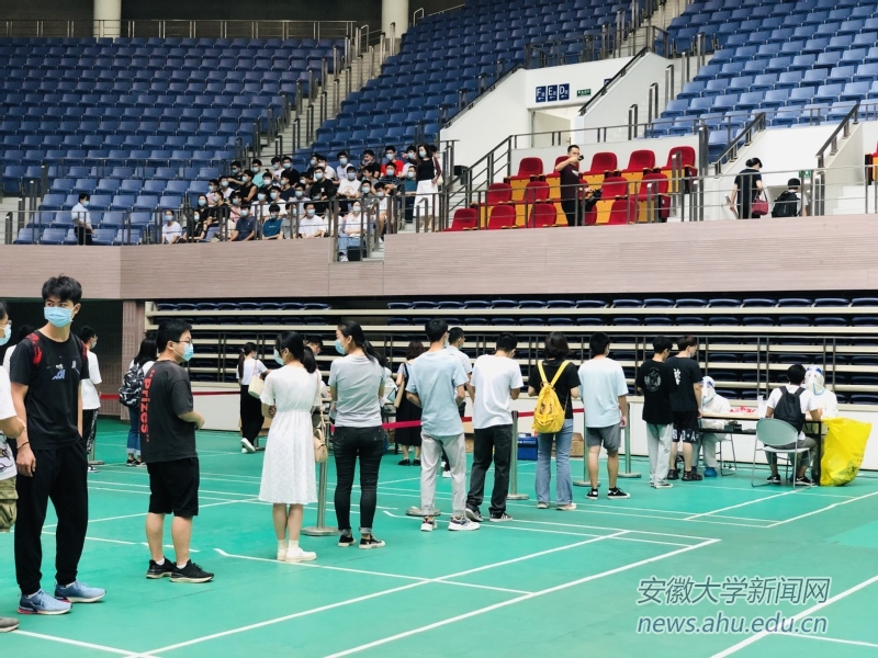 本网讯(融媒体中心 范华飞 梅永峰)为进一步加强平安校园建设,根据上级文件要求,9月2日,学校分别在磬苑校区体育馆和龙河校区田家炳体育馆组织在校师生员工进行秋季学期开学前集中核酸检测。校党委书记蔡敬民等校领导前往检测现场视察指导工作。因前期准备充分,整个检测流程快捷高效,医护人员贴心周到,现场秩序井然。