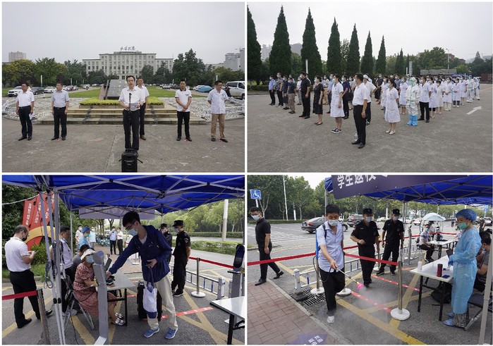 本网讯(融媒体中心吕昊)9月1日上午,学校在龙河校区举行疫情防控应急演练。校党委书记蔡敬民,校党委副书记胡小松,校党委常委、纪委书记、监察专员王忠,校党委常委、副校长周飞出席演练。