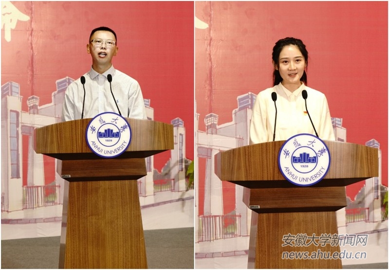 新教师代表作入职宣誓。新教师代表陈学刚和新辅导员代表赵凛凛,代表290名新入职教职工分别作了发言。