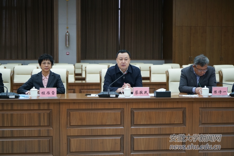 蔡敬民代表学校对省商务厅到校指导工作表示感谢和欢迎。他表示,学校坚持“服务安徽、立地顶天、开放合作、融合发展”的办学定位,调结构、转功能、增体量、提质量,为深度融入长三角一体化发展和深化服务安徽经济社会发展贡献安大智慧。他强调,与安徽省商务厅共建中国(安徽)自由贸易试验区研究院,是贯彻落实习近平总书记考察安徽重要讲话精神和习近平总书记对自由贸易试验区建设作出重要指示的具体举措。学校要提高认识、开拓视野,要拉高标杆、对标世界一流水平,坚持问题导向、梳理主要问题,不断总结经验和调整方向,为建设高标准高质量自由贸易试验区贡献更多力量。