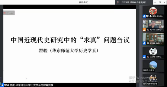本网讯(通讯员 任东峰、王丽彩)11月4日晚七点,安大史学新讲堂第二十六讲如期在线上举办。此次讲座特邀华东师范大学历史学系瞿骏教授主讲,我院院长盛险峰教授担任主持人,讲座题目为“中国近现代史研究中的‘求真’问题刍议”。来自国内外高校共计630位学人在线聆听了此次讲座。