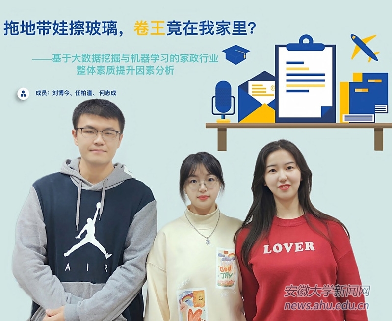 本网讯(经济学院 贾婧)11月14日,由中国统计教育学会、全国应用统计专业学位研究生教育指导委员会联合主办的2021年(第七届)全国大学生统计建模大赛在天津财经大学圆满落幕。我校经济学院2019级经济学拔尖实验班学生刘博今、任柏潼和数学科学学院2019级金融数学专业学生何志成组成的团队(作品《拖地带娃擦玻璃,卷王竟在我家里?——基于大数据挖掘与机器学习的家政行业整体素质提升因素分析》,指导老师:贾婧)荣获全国一等奖,实现了我校在该项赛事上的历史性突破。