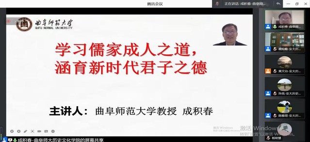 本网讯(通讯员:夏晨曦、林雨洁)11月17日晚19时,安徽大学历史学院颜子大讲堂(2021秋讲)在线上如期举办。此次讲座特邀曲阜师范大学历史文化学院成积春教授主讲,我校历史学院院长盛险峰教授担任主持人,讲座主题为“学习儒家成人之道,涵育新时代君子之德”。我校历史学院院党委书记周世珍老师,院党委副书记孙亮老师,及陈雅珺老师、张苗苗老师、黄文治老师、杨逸老师参加。