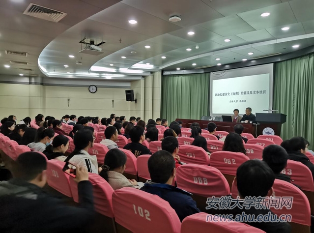 本网讯(贾旭东、黄文治)11月24日,吉林大学考古学院教授、古籍研究所所长冯胜君先生为我校历史学院师生作了题为“试论孔壁古文《尚书》的篇目及文本性质”的学术讲座。冯教授为国务院历史学科评议组成员,主要从事出土文献与古文字方面研究,在《文史》《社会科学战线》《古文字研究》《简帛》等学术刊物上发表论文40余篇,出版专著2部。