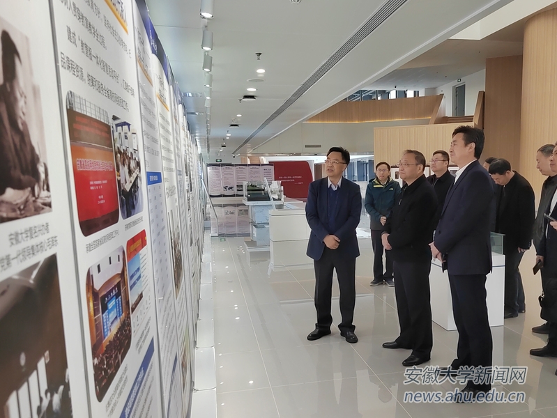座谈交流之前,考察组一行参观了我校“双一流”建设成果展。