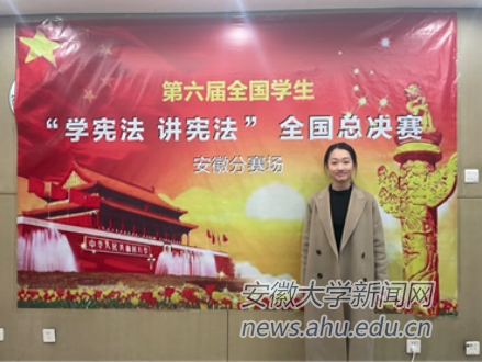11月27日至12月3日我校参赛选手及指导教师在线上参加全国学生“学宪法 讲宪法”活动相关演讲比赛、知识竞赛。我校法学院2020级法学专业学生史韵歆代表安徽省参加全国总决赛,经过两轮比赛,荣获全国二等奖。
