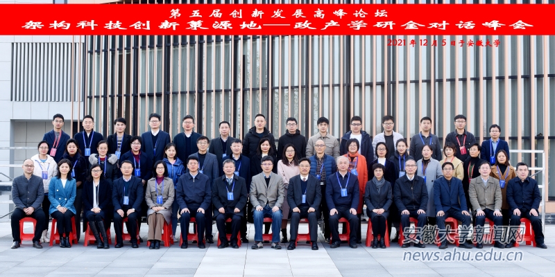 本网讯(人文社会科学处 创新发展战略研究院)由安徽大学和中科院合肥物质科学研究院共同主办的第五届安徽大学创新发展高峰论坛于2021年12月5日在安徽大学磬苑校区举行。本届论坛以“架构科技创新策源地——政产学研金对话”为主题,来自省内外党政界、科技界、企业界、高教界和金融界的专家学者围绕主题展开直接对话,就助力安徽架构科技创新策源地相关问题进行深入研讨。安徽大学校长匡光力和中科院合肥物质科学研究院党委书记黄晨光代表主办方分别致辞。安徽大学党委常委、副校长程雁雷主持开幕式,党委常委、副校长周飞,党委常委、副校长高清维出席了论坛。