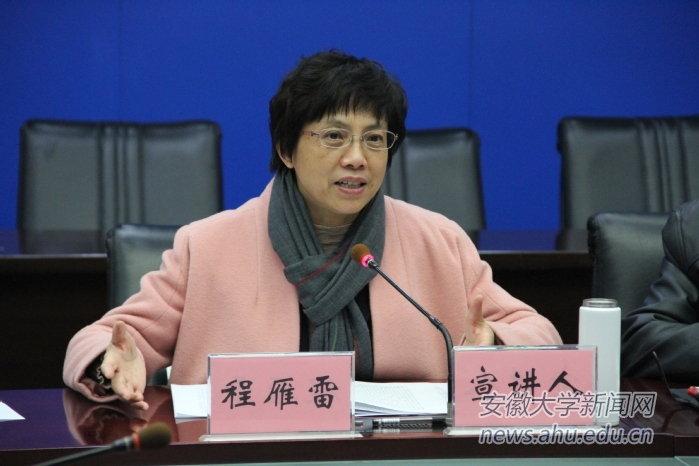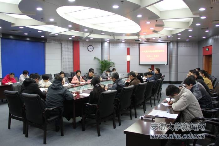 程雁雷强调,要深刻认识党的百年奋斗的历史意义和历史经验,从党的百年奋斗历程中汲取智慧和力量。要切实把思想和行动统一到全会精神上来,深刻认识“两个确立”对新时代党和国家事业发展、对推进中华民族伟大复兴历史进程的决定性意义,进一步增强“四个意识”、坚定“四个自信”、做到“两个维护”。作为安徽大学传统文化创新性发展、创造性转化的主阵地,徽文院要深入把握当前传统文化蓬勃发展的时代机遇,在新一轮“双一流”学科建设中持续发力,进一步发挥好文科“火车头”的引领作用。要坚持自信自强,守正创新,坚持把马克思主义基本原理同中华优秀传统文化相结合,更好地阐述中国实践,凝练中国理论,为构建中国特色、中国风格、中国气派的哲学社会科学学科体系贡献安大智慧。