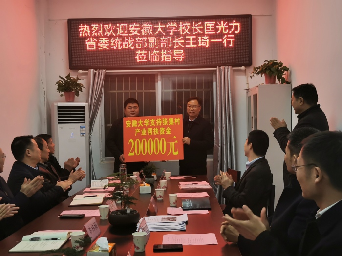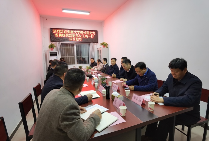 李继双对匡光力一行的来访表示欢迎,感谢安徽大学对张集村的帮扶,表示将继续协助和支持安徽大学的帮扶工作。阜南县委常委、统战部部长、县委办公室主任李袆楠,县人大常委会副主任李玉峰,校资产经营公司党委书记夏世轩,校工会副主席李克勋,王化镇党政主要负责同志等陪同调研座谈。