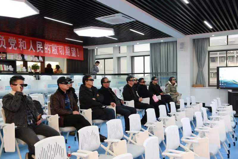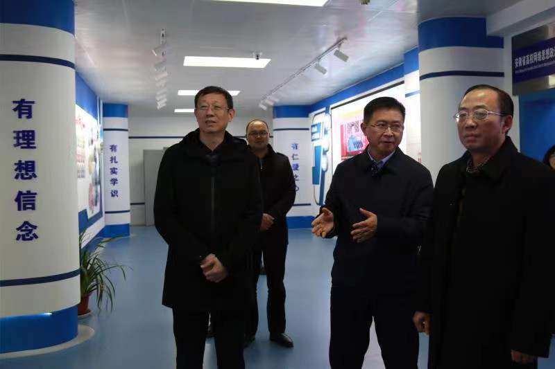 胡小松对钱健一行的到来表示欢迎,并简要介绍了省中心建设情况和建设成效等。钱健一行参观了中心的智慧教室、易班发展中心、新媒体联盟暨舆情分析中心,考察思政课虚拟仿真体验教学中心。双方就高校智慧思政平台建设、应用、推广、共享等方面工作进行了深入探讨。