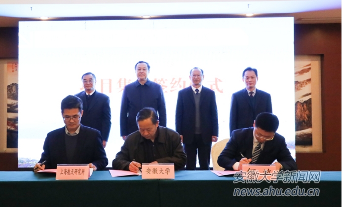 学校相关单位负责人,岳西县发改委、科技局及上海航天电子技术研究所负责人参加了签约活动,并就合作内容进行了充分交流和深入探讨。