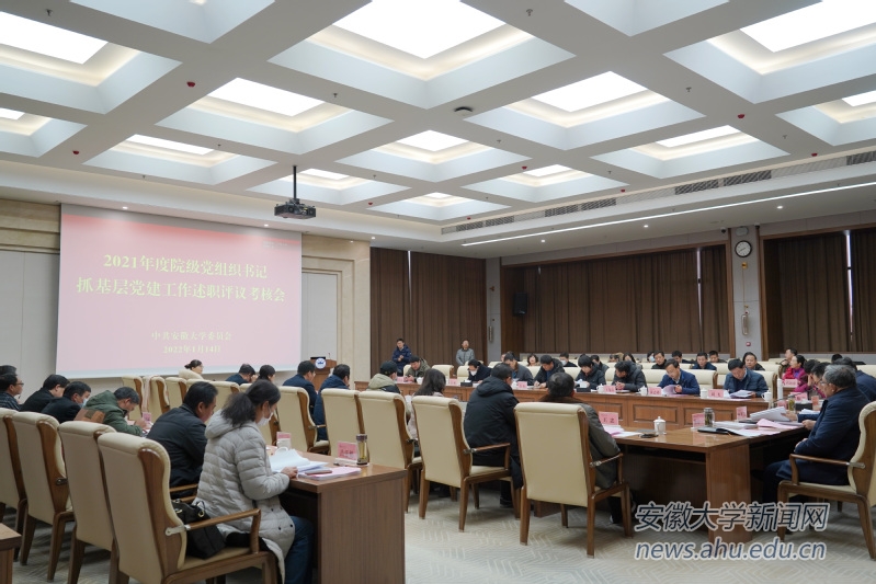 会上,23位院级党组织书记就2021年度抓党的建设工作情况进行了现场述职,其他15位同志进行了书面述职。与会人员对38位院级党组织书记抓基层党建工作情况进行评议,校纪委委员对38个院级党组织党风廉政建设情况进行评议。