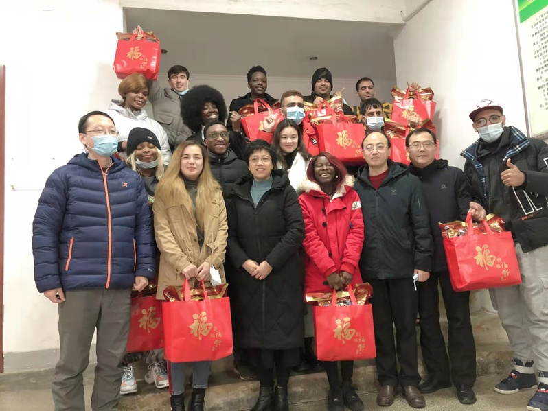 座谈会上,校领导与国际学生们进行了亲切交谈并送上了新春的美好祝愿。在详细了解国际学生们在校学习生活情况后,校领导表示寒假期间学校将全力做好留校学生的服务与保障工作,希望同学们按照疫情防控的要求,减少非必要外出,做好个人防护,合理安排好假期生活,不断充实自己,加强体育锻炼,同时多向本国的家人介绍中国的疫情防控工作和学校的支持保障措施,让家人放心。国际学生们纷纷对学校的关怀表达感谢,表示虽然因为疫情不能回国与家人团聚,但在校期间一直受到老师们的关心与照顾,能时时感受到家一般的温暖。座谈会后,校领导给国际学生们送上了精心准备的年货并合影留念。