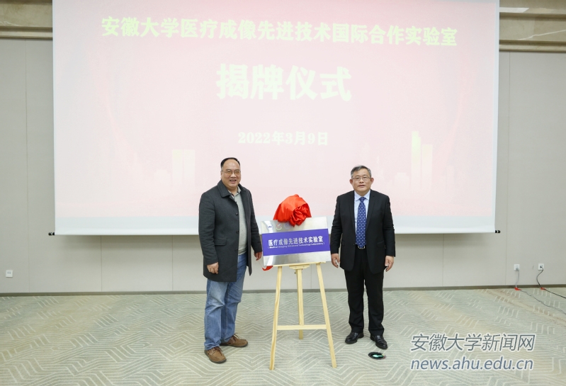 会议随后举行了安徽大学与加拿大温尼伯大学医疗成像先进技术实验室签约和揭牌仪式。钱家盛宣读谅解备忘录核心条款,吉诺·迪斯塔西奥和陈诗一代表双方线上签署《中国安徽大学与加拿大温尼伯大学医疗成像先进技术实验室合作计划谅解备忘录》,杨晓阳、陈诗一为医疗成像先进技术实验室揭牌。