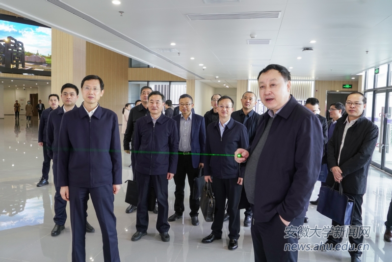 会前,池州市人民政府一行参观了安徽大学建设发展成果展,蔡敬民从历史沿革、党建引领、立德树人等版块介绍了学校“双一流”建设成效。