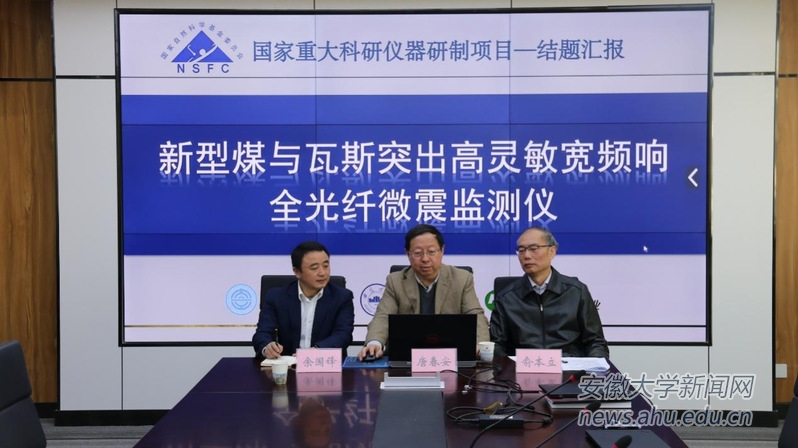 本网讯(信息材料与智能感知安徽省实验室 吴许强)3月10日,我校联合大连理工大学、淮南矿业集团承担的国家重大科研仪器研制项目“新型煤与瓦斯突出高灵敏宽频响全光纤微震监测仪(51627804)”,通过基金委组织的结题验收。验收会以网络视频会议形式进行,项目承担单位有关领导、课题负责人及研究骨干齐聚安徽大学参加验收会。