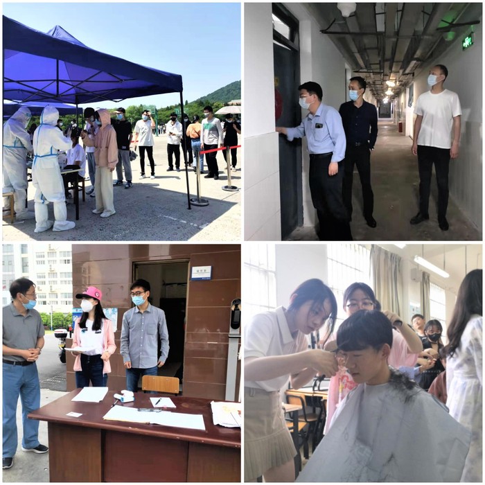 加强监测管理,把学生放在心上。学校时刻把学生放在心上,倾听学生的呼声,了解学生的状态,把温暖落实在日常管理和服务工作中,让学生享受美好的校园时光。校党委常委、副校长孙长银深入食堂,和学生一起就餐,暖心询问学生的学习生活情况,鼓励同学们和学校一起克服困难,共同抗疫。蜀山校区全体学生按照每天20%比例每周完成一轮全覆盖核酸检测。4月16日晚,发现山西韵达快递涉疫快递后,校区第一时间对相关同学及室友进行健康监测,采集环境样本、快递商品等进行检测,对涉及同学、室友、物业、快递服务人员进行了核酸检测,检测结果均为“阴性”。 自三月份以来,各位同学无法外出理发导致发型“走样”,集成电路学院举行义务理发活动,解决了学生的苦恼问题。学生生病,由辅导员专门陪同出校就医,让学生心里感觉到学校的关心和温暖。
