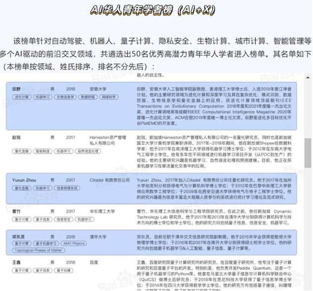 本网讯(人工智能学院)近日,百度发布全球首份人工智能华人青年学者榜单,我校青年教师田野博士入选。该榜单基于近20万篇论文和10万名学者数据,从学术水平、学术影响力、学术潜力指数三个维度,在全球范围内遴选出150名活跃在人工智能领域的高潜力华人青年学者。入围榜单的青年学者来自全球98所顶尖大学或机构,其中来自中国境内的高校或机构为38所,占比39%。在本次榜单中,入选青年学者最多的高校或机构分别为清华大学(8人)、谷歌(8人)、中科院(7人)、微软(7人)、香港大学(4人)、上海交通大学(3人)、卡内基梅隆大学(3人)、加州大学圣地亚哥分校(3人)、哥伦比亚大学(3人)和Facebook(3人)。