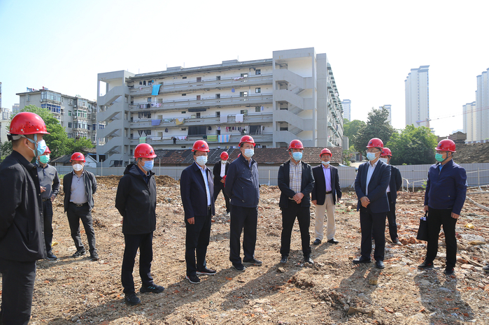 校领导蔡敬民、匡光力、周飞在401#-403#学生宿舍项目工地实地察看