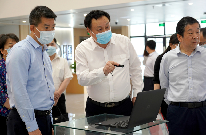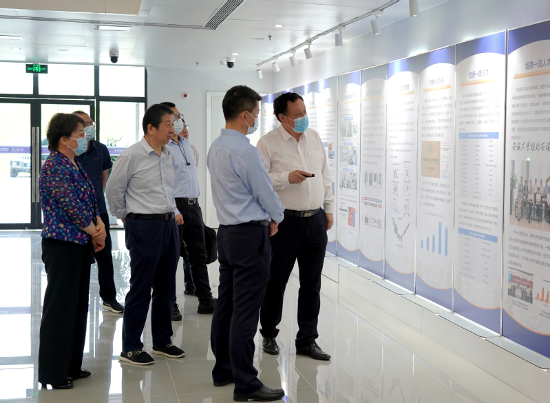 第一阶段会议结束后,张红文在蔡敬民等陪同下,参观了学校“双一流”成果展,实地调研了物质科学与信息技术研究院,认真听取介绍,详细询问我校科研团队开展技术攻关、产品开发及科技成果转移转化等相关情况,并同科研人员亲切交流,鼓励大家大力推进产学研协同创新,与龙头企业组建创新联合体,聚焦关键核心技术联合开展科研攻关。