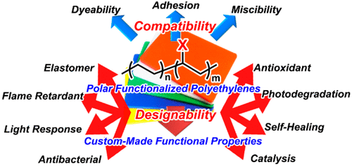 三、谭忱老师与中国科学技术大学陈昶乐教授合作,在高分子材料领域Nature Index期刊《Macromolecules》上发表Perspective文章。该文章在简要综述过渡金属催化的乙烯与极性单体共聚在催化剂性能、单体适用性等方面的研究进展的基础上,重点对配位共聚法功能化聚乙烯材料的性质研究的进展进行了综述与展望。我校谭忱老师(排名第一)和中科大邹陈博士后(排名第二)为共同第一作者,陈昶乐教授为通讯作者,安徽大学为第一单位。