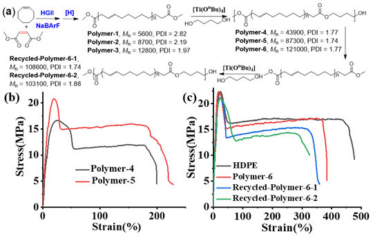 一、陈敏教授团队与中国科学技术大学陈昶乐教授合作,提出了一种基于助催化剂的新调控策略,将其应用于环状烯烃单体的复分解聚合和聚合物微观结构的调控,同时研究了后续的主链可降解聚乙烯的合成和闭环回收等等。相关研究以“A Cocatalyst Strategy to Enhance Ruthenium-Mediated Metathesis Reactivity towards Electron-Deficient Substrates”为题发表在顶级专业期刊《Angew. Chem. Int. Ed.》上,中科大博士生司桂福和我校谭忱老师为该论文共同第一作者,我校陈敏教授和中科大陈昶乐教授为共同通讯作者。