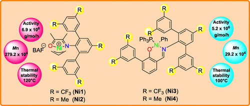 二、陈敏教授团队在α-酮亚胺和水杨醛亚胺镍系烯烃聚合催化剂的含氟取代基效应方面取得了新进展,并通过使用新催化剂实现了制备支化超高分子量聚乙烯材料。近日,该成果发表在金属有机领域权威期刊《Organometallics》上,题目为“Fluorine Effect on α-Imino-ketone- and Phenoxyiminato Nickel-Catalyzed Ethylene Homo- and Copolymerization”。我校硕士生王小月(排名第一)和许梦丽(排名第二)为共同第一作者,安徽大学为第一单位。