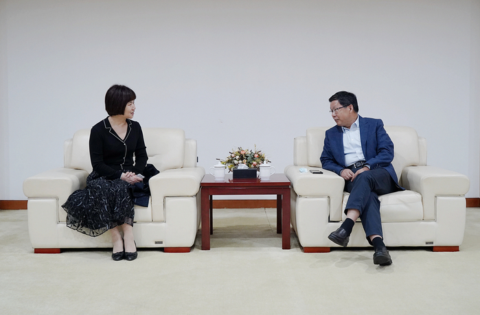 周飞(右)在磬苑校区会见杨翠萍