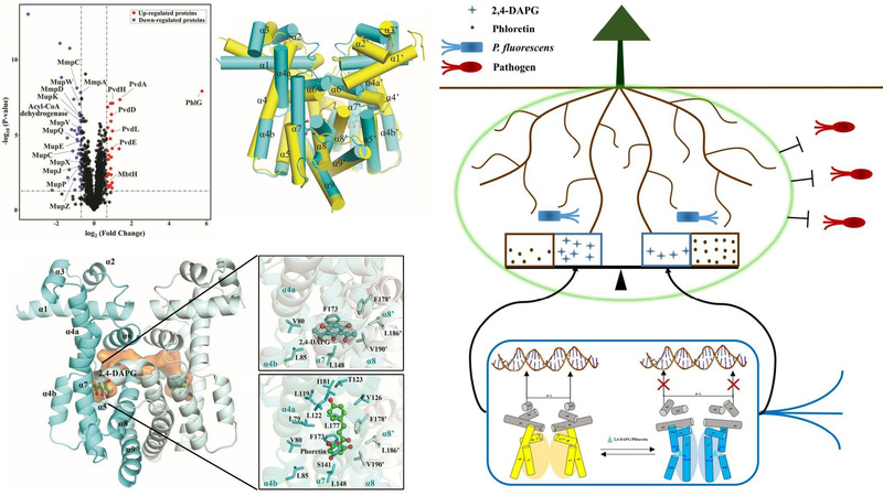 图 TetR家族的转录调节因子PhlH响应细菌和植物信号分子协同调控分子机制