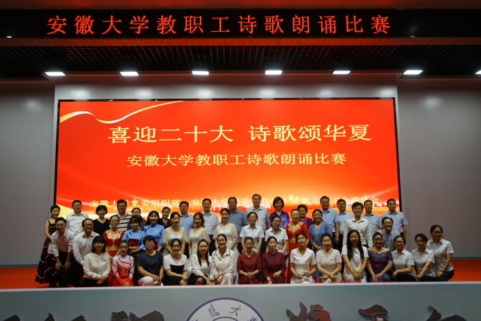 本次活动特别邀请安徽电视台节目主持人现场主持,由许北雄、朱海燕等国家一级演员担任专业评委。选手以诗言志,以声传情,在比赛现场,纪念袁隆平先生的《我有一个梦》组诗、歌颂“红船精神”的《红船,从南湖启航》等澎湃激昂的诗歌朗诵,展现了安徽大学师生满腔的爱国、爱党情怀,汇聚了中国人民追梦奔跑的蓬勃力量。