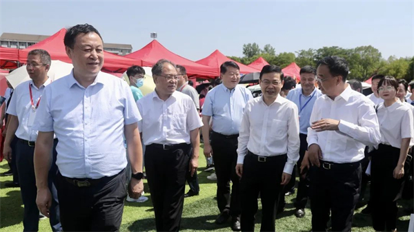 本网讯(融媒体中心)6月14日上午,安徽省2022届高校毕业生国有企业夏季专场招聘会在磬苑校区举行。省委教育工委副书记、省教育厅厅长赵振华,省国资委党委书记、主任李中,省委教育工委委员、省教育厅副厅长解平,省国资委二级巡视员陈方;校党委书记蔡敬民,校党委常委、副校长高清维巡看现场并指导招聘工作。