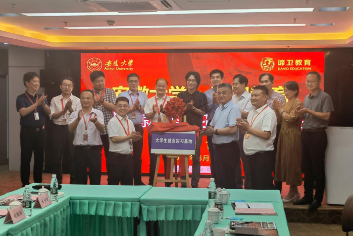 钱家盛介绍近期学校建设发展情况,高度肯定谛卫教育以设立助学金的方式回报母校的做法,强调要进一步发挥校友资源优势,希望双方在就业实习基地建设、提升学生职业核心竞争力等方面进一步深化合作。艺术学院2009届校友、安徽谛卫教育有限公司负责人刘志艳介绍了公司发展历程和成绩。期间,双方举行了大学生就业实习基地揭牌仪式。