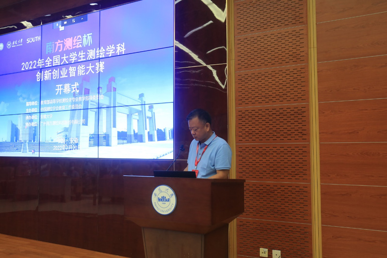 本网讯(资源与环境工程学院 江鹏)7月20日上午,由教育部高等学校测绘类专业教学指导委员会指导、中国测绘学会教育工作委员会主办、安徽大学承办的2022年全国大学生测绘学科创新创业智能大赛开幕式在我校举行。安徽大学副校长薛照明,教育部高等学校测绘类专业教学指导委员会、中国测绘学会教育工作委员会副主任委员、山东建筑大学原校长靳奉祥教授,中国测绘学会彭震中秘书长,安徽省教育厅巡视员朱乃韬,广州南方测绘科技股份有限公司副总经理郭宝宇等出席开幕式并先后致辞。教育部高等学校测绘类专业教学指导委员会副主任委员、同济大学陈义教授主持开幕式。