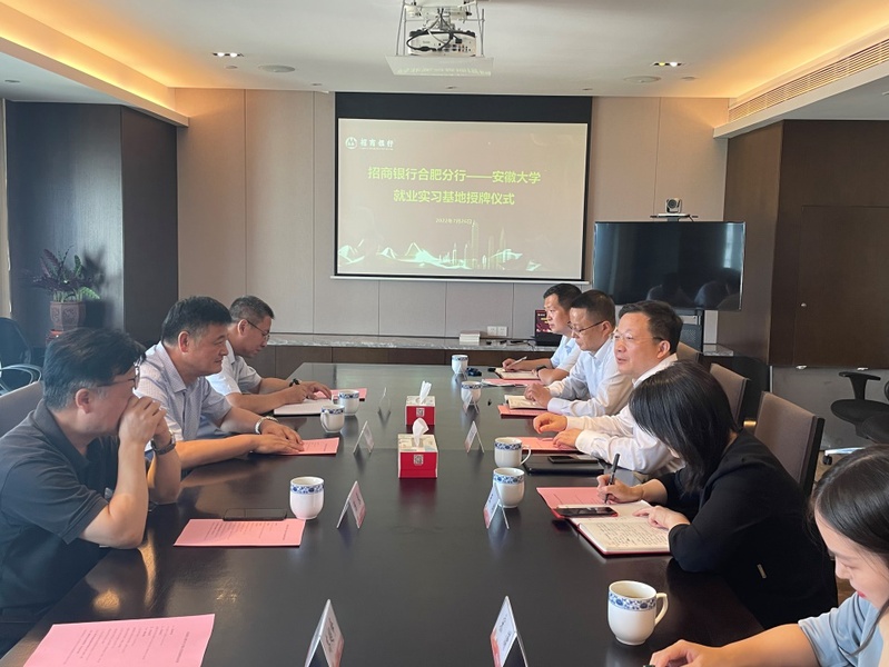 招商银行合肥分行党委委员、副行长刘文明接待高清维一行,双方进行了座谈交流。刘文明介绍了招商银行合肥分行2022年人才招聘情况,对我校毕业生在招商银行取得的成绩予以充分肯定。高清维对招商银行合肥分行对我校就业工作的长期支持表示感谢,希望双方持续深化校企合作,进一步拓宽合作领域,促进发展共赢。