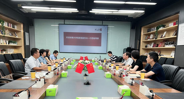 程雁雷介绍了学校建设发展情况,高度肯定并赞扬了安徽新华发行集团在探索推进公共文化事业和文化产业深度融合等方面取得的成绩,希望进一步深化校企合作,产教研融合培养优秀人才,拓宽毕业生就业渠道。安徽新华发行集团党委副书记、总经理、董事金涛介绍了集团的基本情况、近期工作、远景规划和用人需求,表达了与我校在人才培养、实践教育、科学研究、人才供给等方面深入合作交流的意愿。